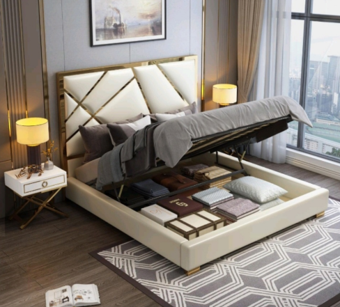 £1,695.00 – £2,399.00Price range: £1,695.00 through £2,399.00Classic Italian leather bed with a solid wood frame, upholstered in cream leather with high-density rebound sponge. Accented with gold Stainless steel legs and frame for a luxurious touch. Available in King (213x152x140 cm) and Queen (182×140 cm) sizes. A refined addition to elegant bedrooms.