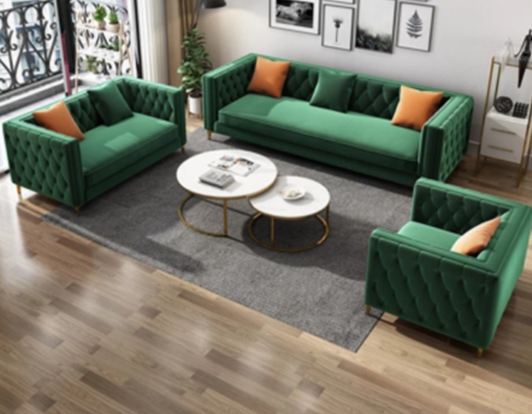 Velvet fabric+high density sponge+wooden frame+golden stainless steel