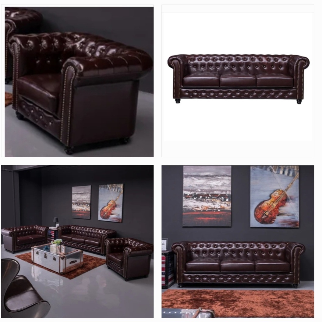 Classic Chesterfield Sofa in Leather with High-Density Rebound Sponge solid Wood Frame and Legs. Available in Brown, Cream, Blue & Black, Sizes 13 Seater.