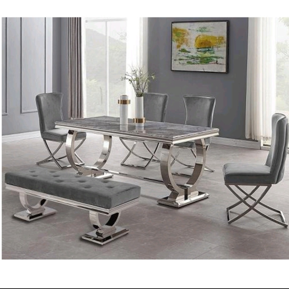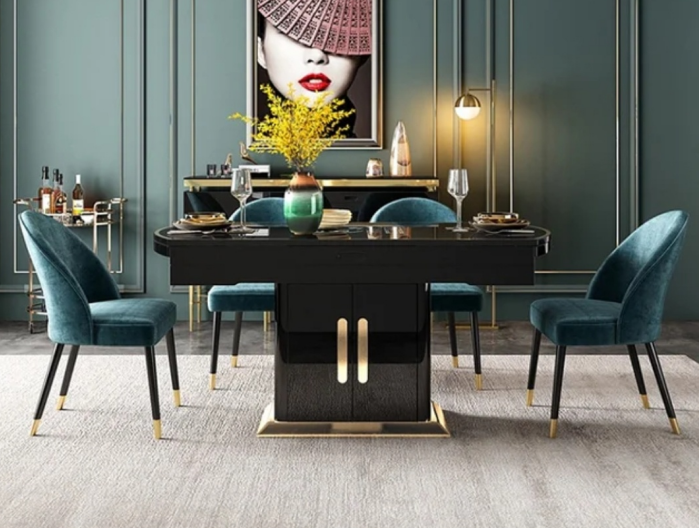 £1,359.00Modern rectangular dining table featuring a marble sintered stone top and a sturdy carbon Stainless steel frame in black or gold finishes. Available in black and white marble options. Designed with food-grade materials and titanium gold Stainless steel accents