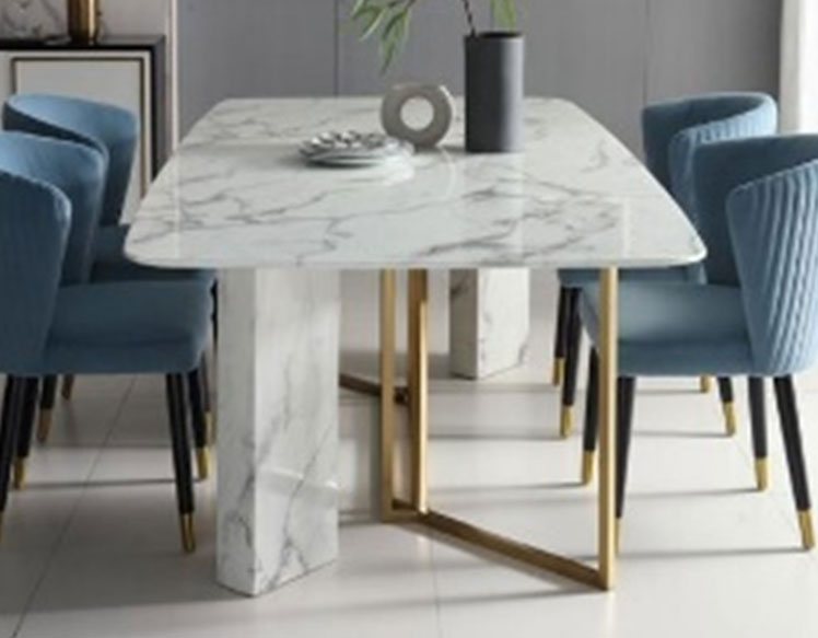 £1,359.00Modern rectangular dining table featuring a marble sintered stone top and a sturdy carbon Stainless steel frame in black or gold finishes. Available in black and white marble options. Designed with food-grade materials and titanium gold Stainless steel accents