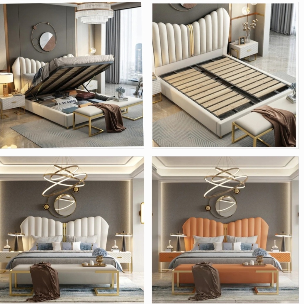 Materials : solid wood+High density rebound foam + Gold Stainless Steel