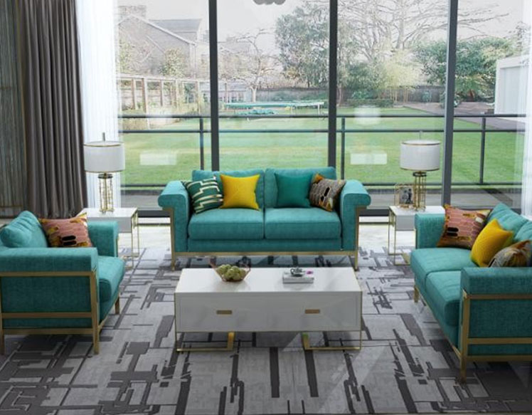 Velvet fabric+high density sponge+wooden frame+golden stainless steel