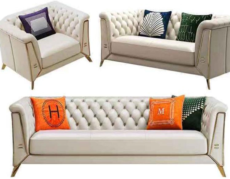 Microfiber leather+high density sponge+wooden frame+golden stainless steel