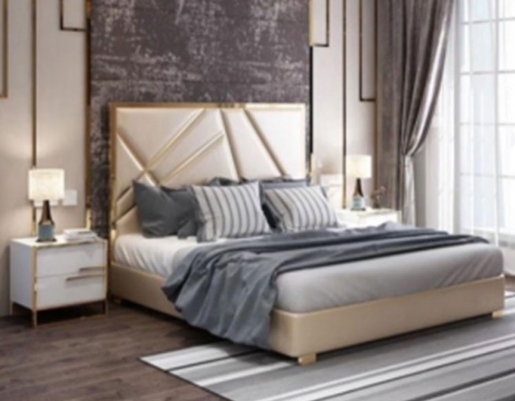 Italian Luxury Velvet Padded Quilted High Headboard Platform Bed