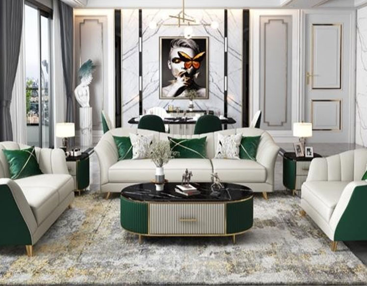 Microfiber leather+high density sponge+wooden frame+golden stainless steel