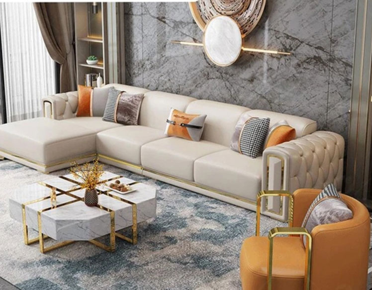 Microfiber leather+high density sponge+wooden frame+golden stainless steel
