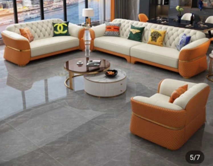 Microfiber leather+high density sponge+wooden frame+golden stainless steel