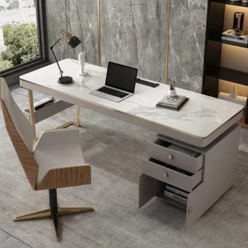 £1,390.00Modern marble dressing table set featuring a solid wood frame, saddle leather, high-density rebound sponge, and gold carbon steel legs. Includes a marble-top table (120x45x75 cm), LED mirror (53×45 cm), and dressing stool (63x45x45 cm). Available in grey and beige tones.