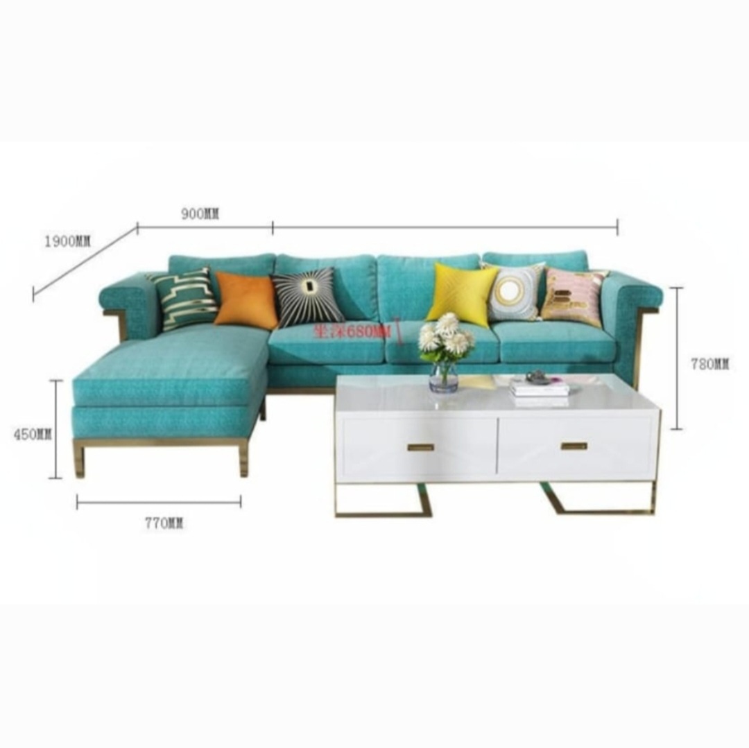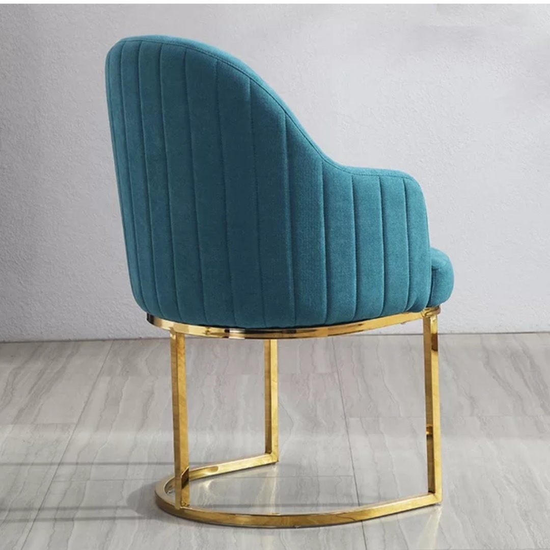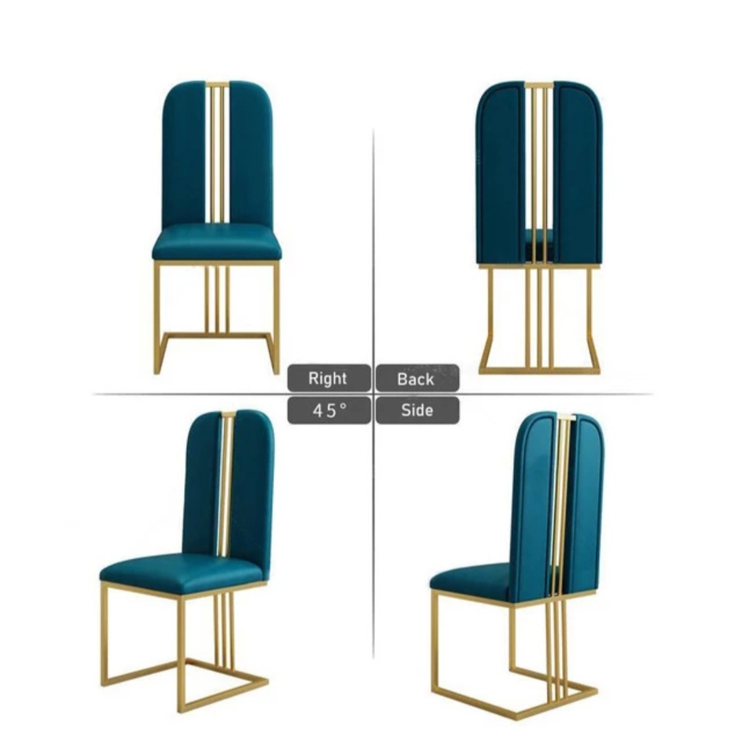 materials : solid wood + Velvet + High density rebound foam + Gold Stainless Steel Frame : solid Wood Leg+Base : Gold Stainless Steel Colours : Blue Style : Morden